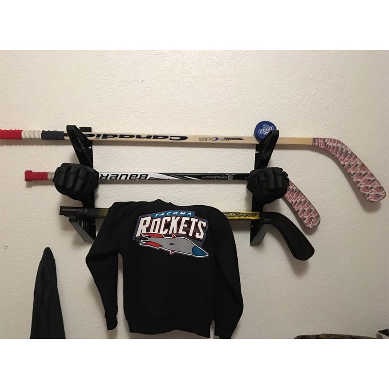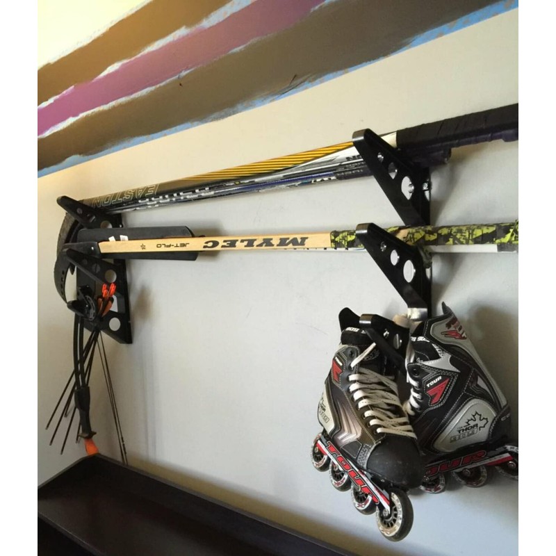 - Hang your ice hockey skates, helmet, and gloves from the rack, too