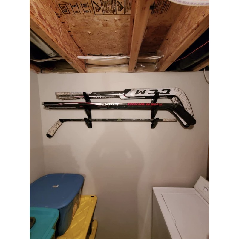 The rack is designed with two separate rack sides that can be mounted at any distance apart to accommodate any length of sticks. Also, makes a great rack for the local rink.