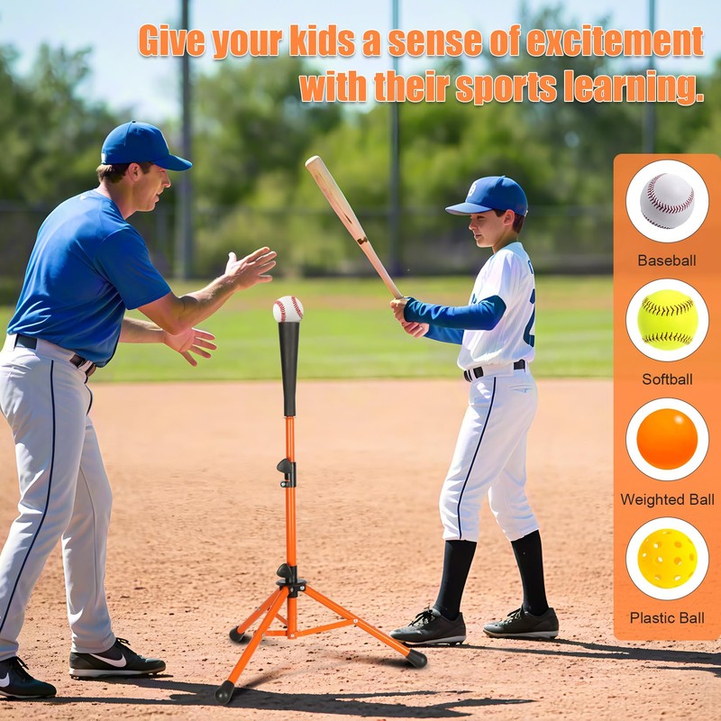 - 【STURDY TRIPOD DESIGN】:Baseball tee is designed with a portable tripod and thicker ball feet on the bottom to provide good grip on a variety of terrains, providing stable support for your every swing and meeting a variety of training needs.