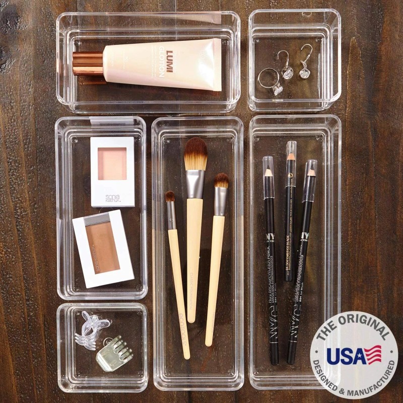 STORi Clear Plastic Vanity and Desk Drawer Organizers | 6 Piece Set