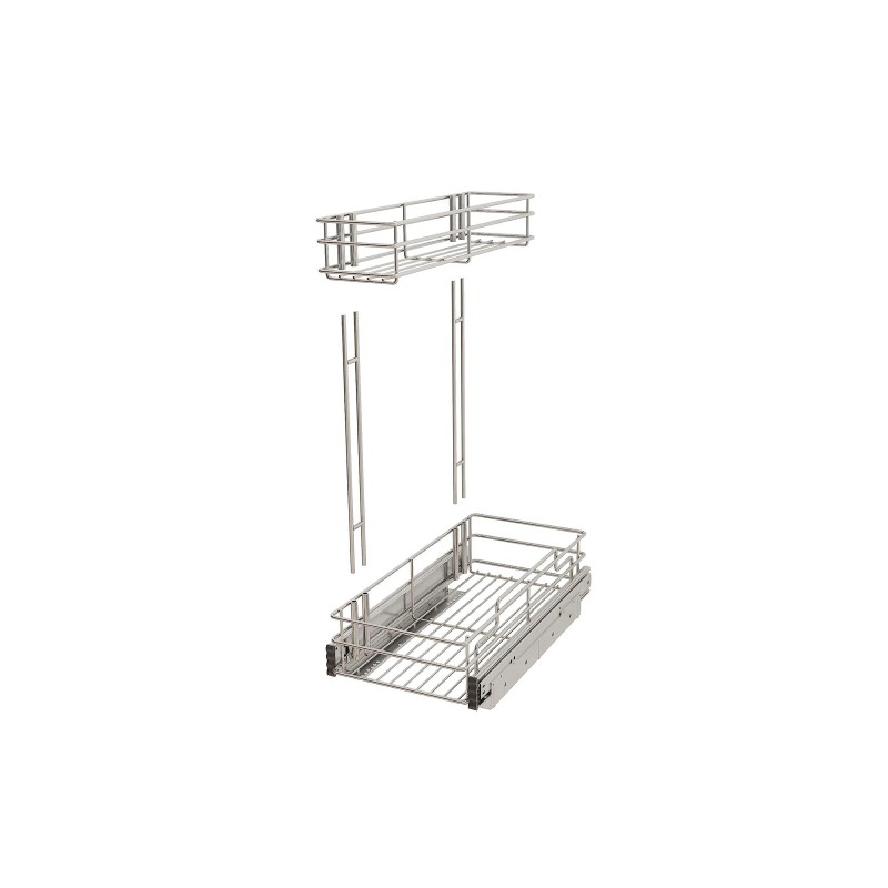 - Durable High Strength Reliable: Wire mesh made of high quality steel, underneath each drawer with 3 cross bars for supporting the heavy weight, even under the weight of heavy portable equipment or cleaning machine this wire basket slide shelf will not sagging and bending. Industrial grade ball sliding system make our cabinet pull out shelve can handle up to 100 lbs. The chrome finish on the pull out organizer makes them increase hardness, wear resistance, corrosion resistance, and easy to clean.