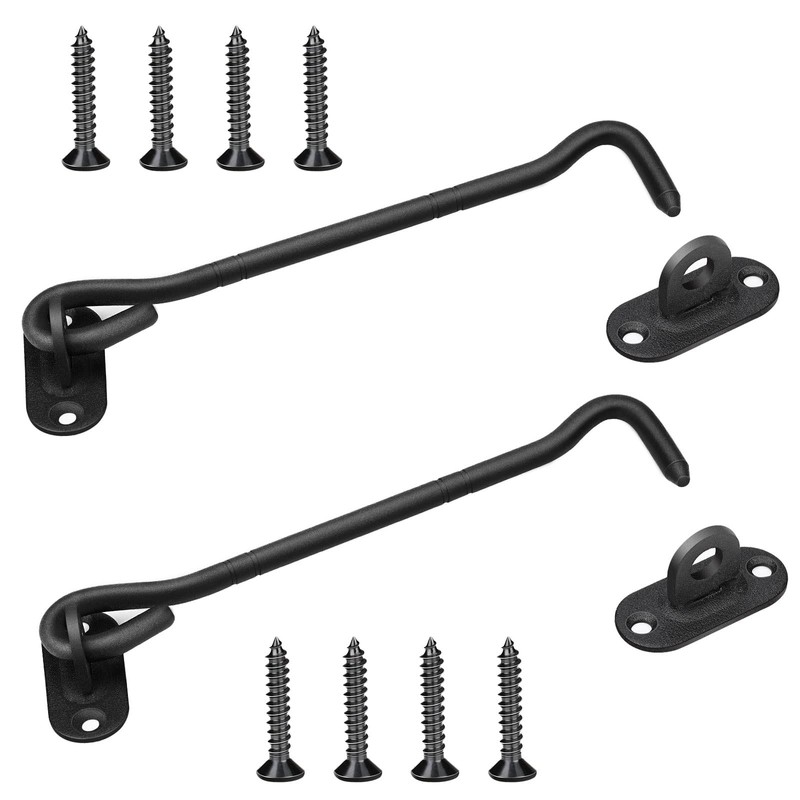 Storm Hook, Hook Lock Stainless Steel, Pack of 2, Cabin Hooks for Balcony, Door Latch with 8 Mounting Screws (Black)