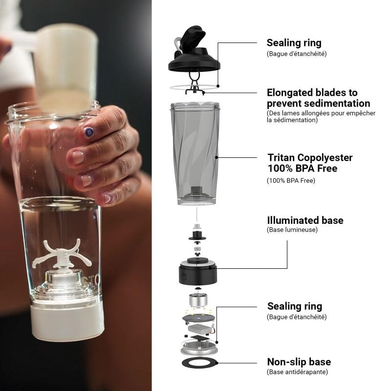 Entdecken Sie den Shaker der neuen Generation. Mit Stormix genießen Sie cremige und cremige Shakes als je zuvor. Entwickelt, um Ihre Pulver und Proteine ohne Klumpen zuzubereiten, revolutioniert der elektrische Stormix Shaker Ihren Alltag. Kein Schütteln des manuellen Shakers mehr, um perfekt gemischte Zubereitungen zu erhalten. Mit seinem abnehmbaren elektrischen Sockel ist Stormix die perfekte Mischung aus Praktikabilität und Innovation. Dieser elektrische Shaker ist in 5 Farben erhältlich und ist gleichzeitig funktional und elegant. Der Akku hat eine längere Lebensdauer und lädt sich schnell auf, damit Sie die Nutzung genießen können, die Ihren Bedürfnissen entspricht. Verbrauchen Sie regelmäßig Proteinpulver, BCAAs oder Preworkout? Der Stormix Shaker bietet eine Laufzeit von mehr als einem Monat! Darüber hinaus zeigt Ihnen die Kontrollleuchte an, wo Sie sich befinden, um den Ladezustand anzuzeigen, damit der Akku nie ausfällt.