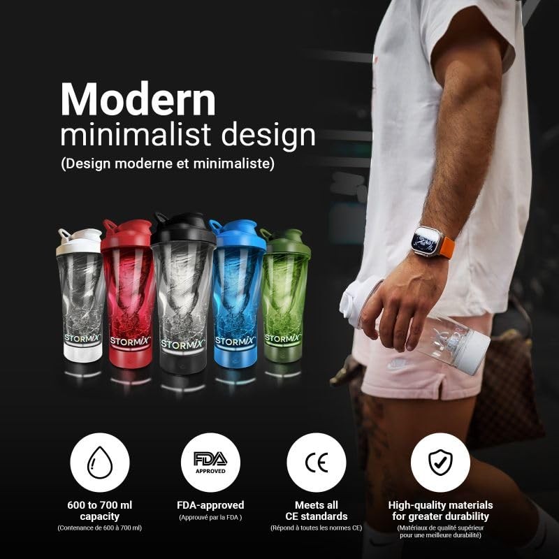 STORMIX - Elektrischer Shaker | Hochwertiger Mixer, cremige Textur | Homogene Zubereitung für Proteine, BCAA | Fassungsvermögen 700 ml | Tritan & ABS, BPA-frei | Geringe Geräuschentwicklung