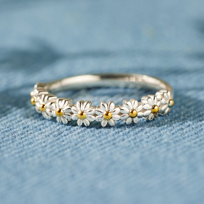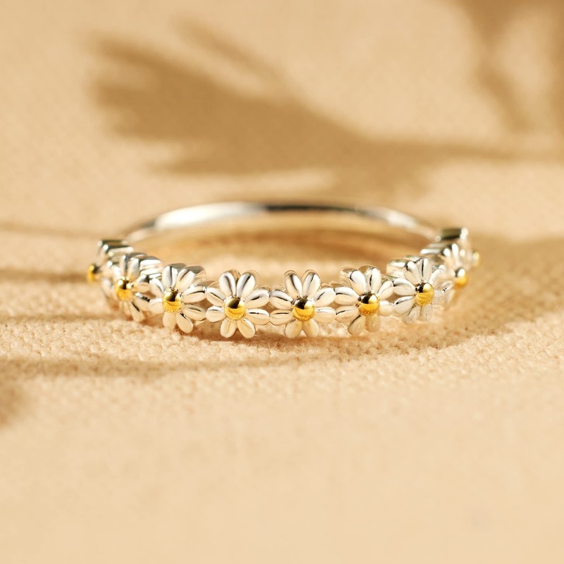 Story Jewellery I Think About You Every Daisy Ring for Women, Daisy Sunflower Rings for Women, Silver Plated Daisy Jewelry Gifts for Mother Daughter Friends, Birthday Christmas Valentines Gifts,