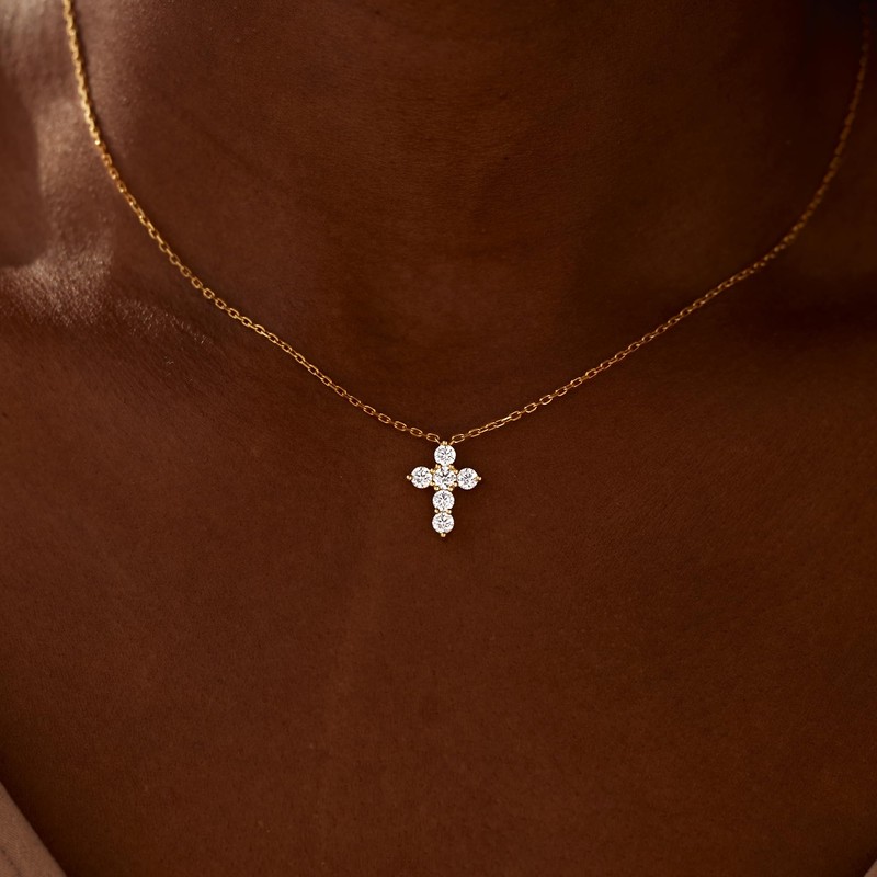 STORYJEWELLERY Small Cross Necklace for Women, 18K Gold Plated Cubic Zirconia Charm Necklace, Dainty Gold Tiny Cross Pendant Necklaces Non Tarnish, Christian Jewelry, Religious Gifts for Women