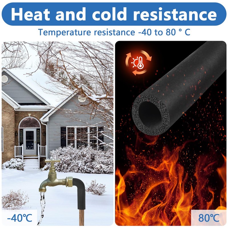 - Outdoor Insulation Tube: Heat insulated and waterproof,heat and cold resistance,even if it snows and freezes outside, the inside of the water pipe wrapped in pipe foam insulation will not be affected
