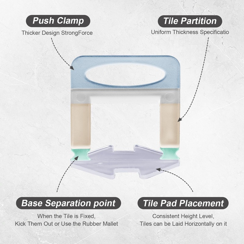 - 【Great Tile leveling System】Great tools for floor/wall setting.The system ensures flatness between tiles avoiding movements during the mortar setting. Fast & easy to install and remove