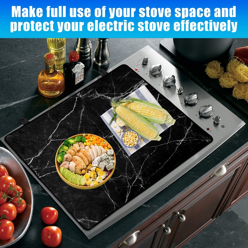- 【Protective and Elegant Stove Top Cover】It’s designed to cover your stove top and protect the glass or ceramic surface from dust, scratches, scrapes, grease and dirt. Featuring a black marble pattern, the cover is also decorative and adds elegance to your kitchen.