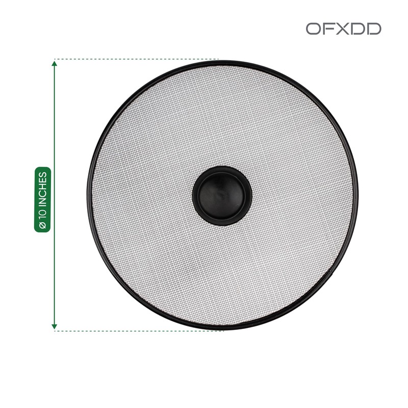 - Heavy duty handle of splatter screen mesh will protect your hands from the heat involved with frying food in the kitchen. A oil screen for skillet is perfect for use while simmering food, when needing to see and check on the food or at times when the food will get too hot while using a pan lid. Stainless steel of stove top splatter shield is easy to clean in a low cycle dishwasher, prevent splatter guard build up.
