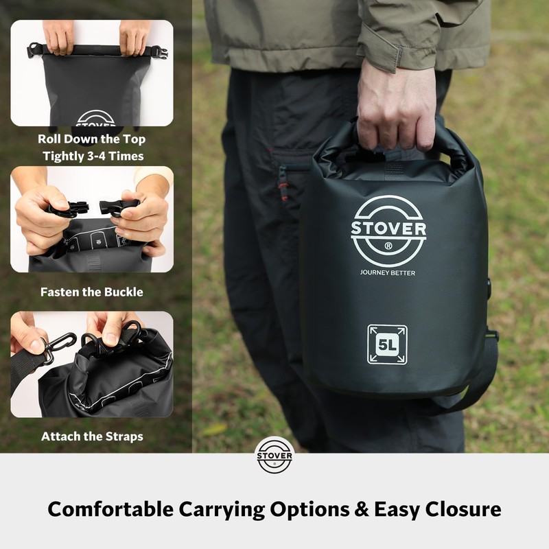 - Cierre superior enrollable fácil de usar: mantén el agua fuera sin esfuerzo con nuestro intuitivo cierre enrollable. Simplemente dobla el paquete seco 3-4 veces, asegura las hebillas, y estarás listo para cualquier aventura