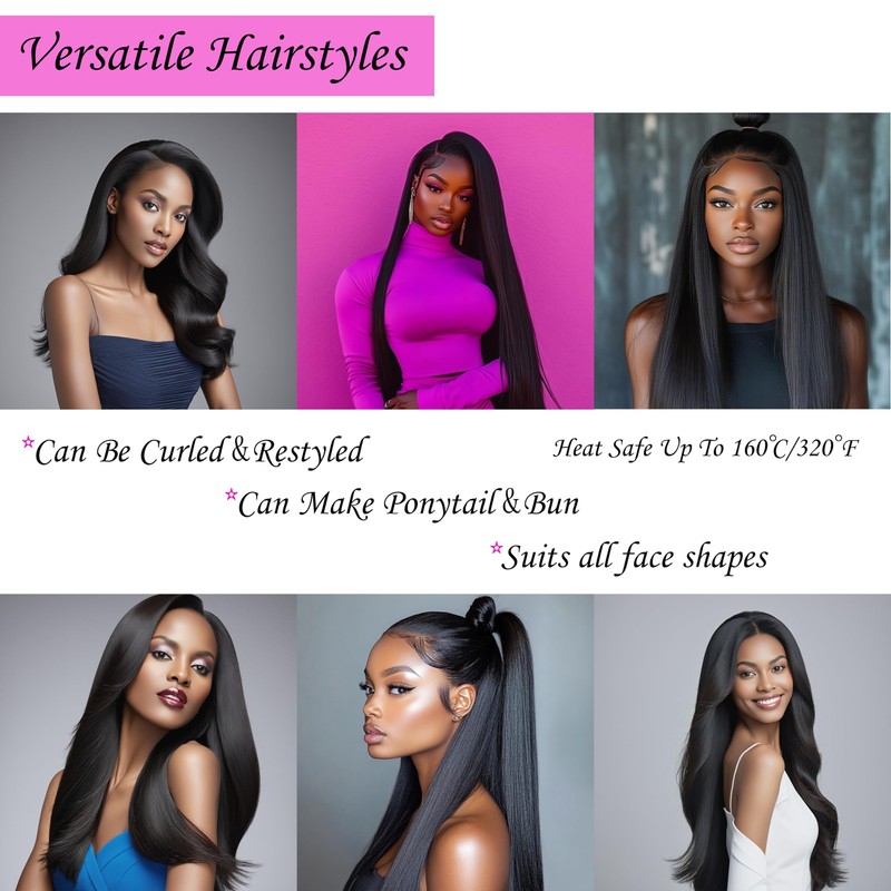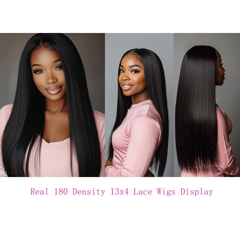 - 180 Density Straight synthetic lace frontal wig material: Upgrade premium synthetic fibers crafted to mimic the softness and appearance of human hair with Heat Resistant up to160 ℃ ( 320℉ ),can be restyled by heat styling tools. Versatile styles suitable for different occasions. Does not contain any chemical substances, is more comfortable and safety.