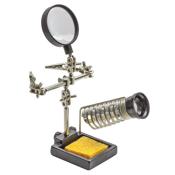 ■ Comes with a fixed clip and a large 2.6 inches (65 mm) magnifying glass for fine soldering work.