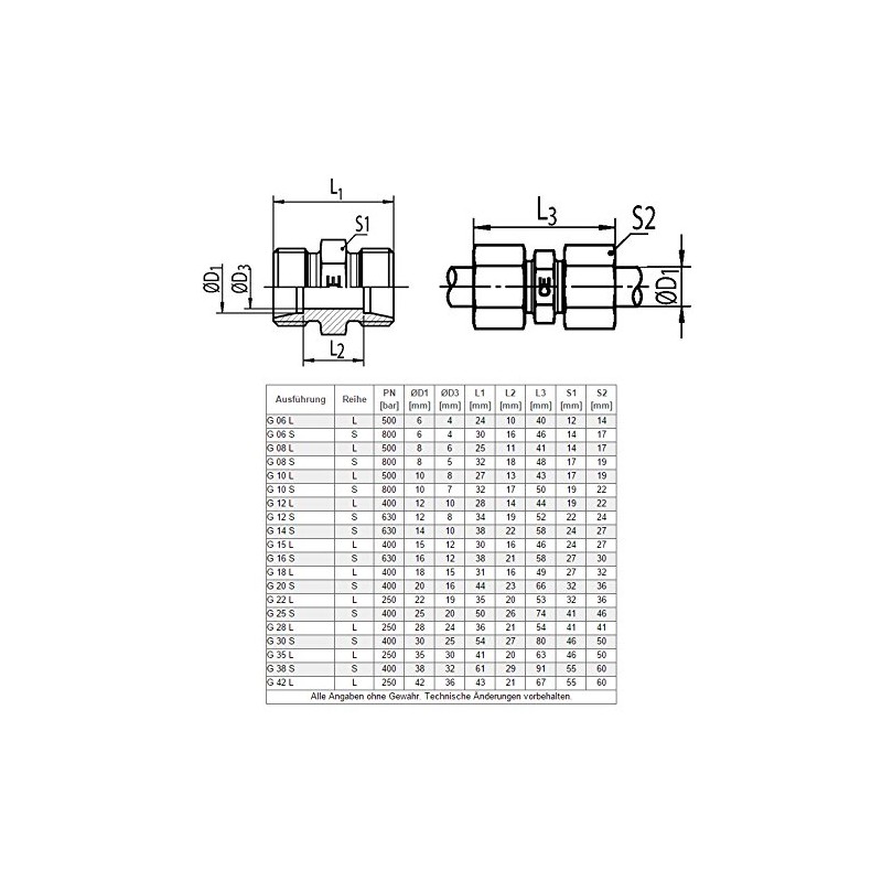 The fittings are manufactured according to DIN 2353 and are suitable for securely connecting seamless pipes in the field of hydraulics and water high pressure as well as for oils, some gases and fuels and much more. If in doubt, please ask for media resistance for your media before purchasing.
