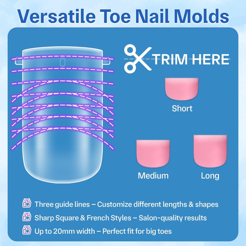- Accurate Measurement for Flawless Toenails: With precise measurement scales, you can easily shape and extend your toenails, perfect for French tips, clear nails, or creative nail art designs