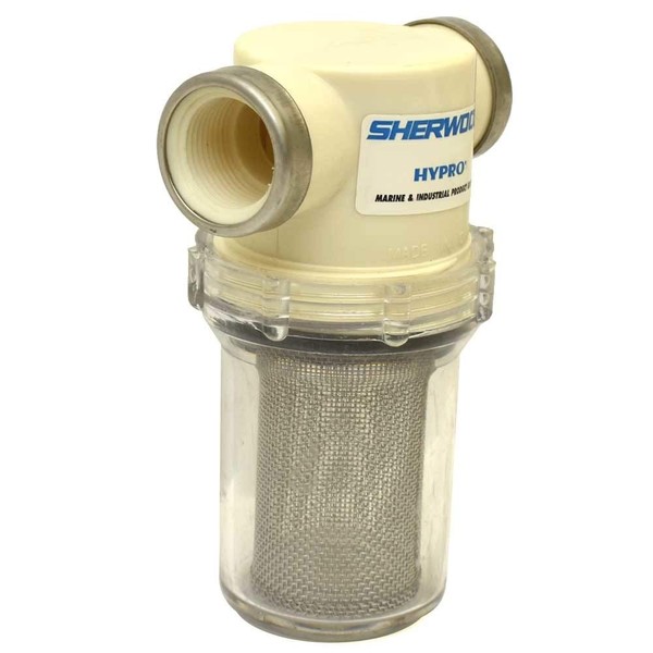 * Boat Manufacturer: Rinker Boats * Part Number: Unavailable * Part Manufacturer: Sherwood Pumps * Part Number: 18001 * UPC: 734943084864 * Material: Nylon / Stainless Steel / Polyamide * Color: Off-White / Clear * Overall Dimensions: 5 1/4" H x 3 5/8" W x 2 3/4" Dia. * Connection: (2) 3/4" NPT female pipe fittings