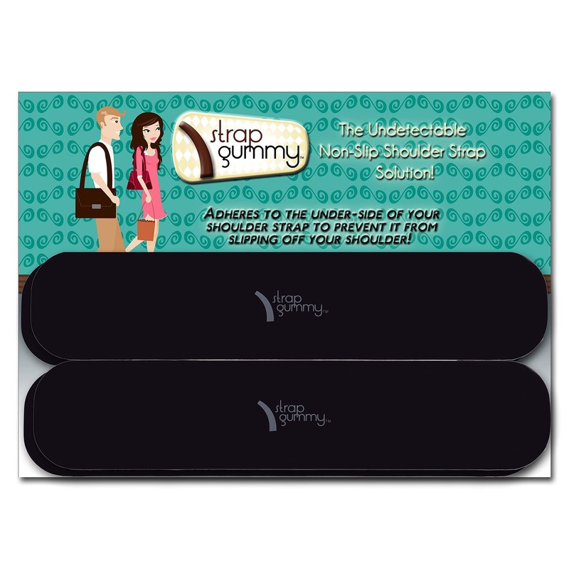 • Strap Gummy is a grippy, semi-clear silicone strip which discreetly adheres to the underside of virtually any shoulder strap. Simple friction prevents the strap from slipping off your shoulder as you go about your day!