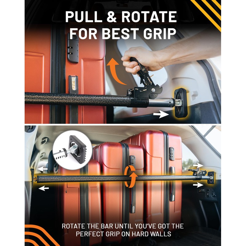 Strapinno - Ratcheting Cargo Bar 44"-74", Non-Slip Truck Bed Divider, Easy Setup, Strong 1.25" Tube, Adjustable Stabilizer for Pickup Trucks