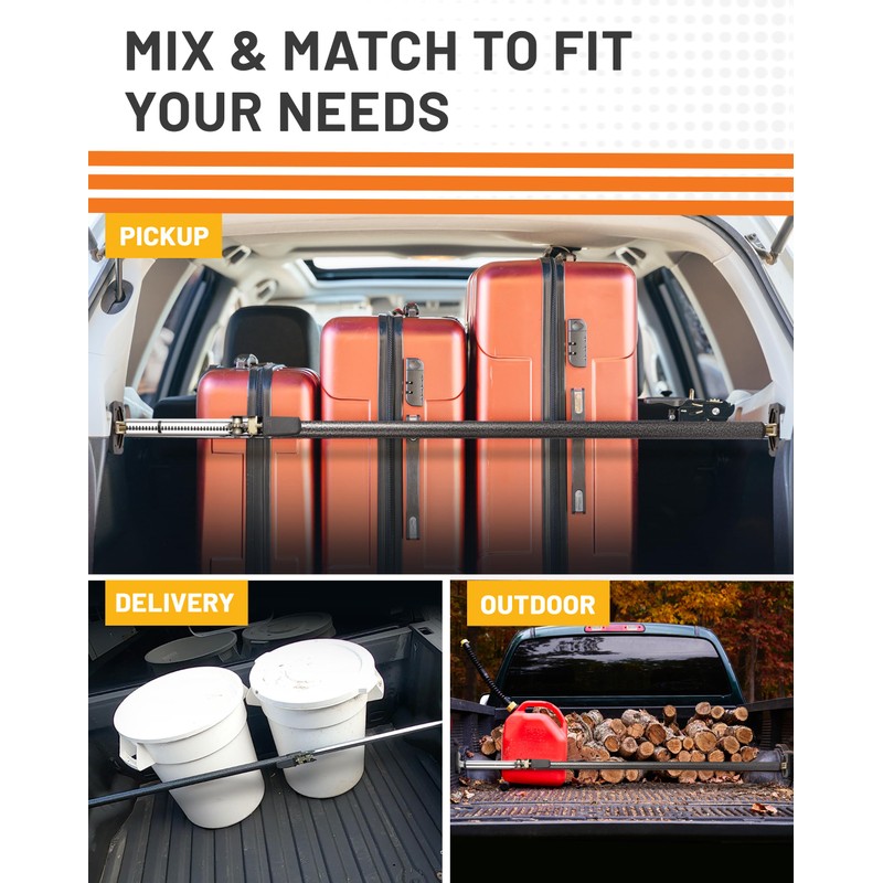 • Secure the Cargo. Enjoy stress-free hauling! Prevent cargo shift with our powerful ratcheting bar, perfect for pickups, wagons, and hatchbacks. Easy to use and provides maximum hold.