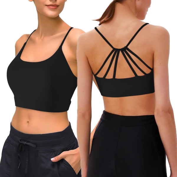 Strappy Sports Bras Women High Impact, Non Wired Yoga Bra Top Seamless Vest with Padded, Halter Neck Push Up Workout Bra Backless Gym Tops for Girls Black