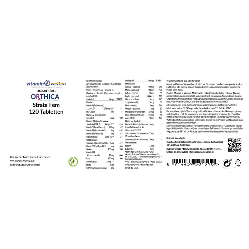 - Multi Strata Fem is a dietary supplement with vitamins, minerals, high-dose iron and plant ingredients especially for women.