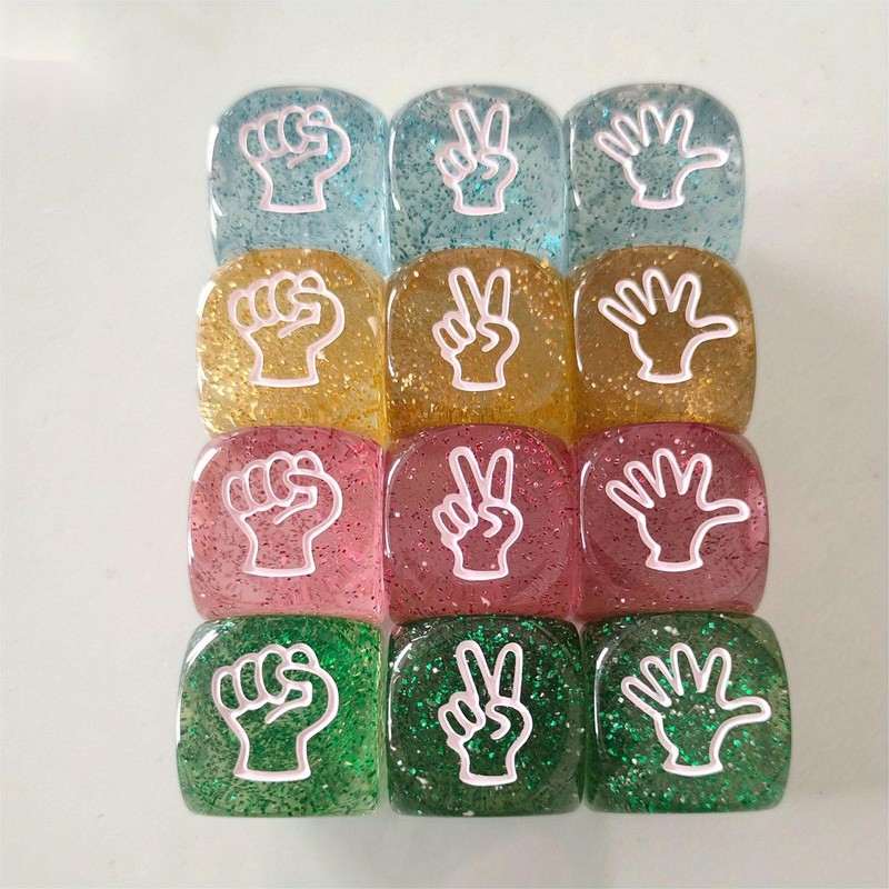 Strategyify Glitter Hand Gesture Dice Set, 20mm/0.787in, 12 Pieces, Party Game Accessory