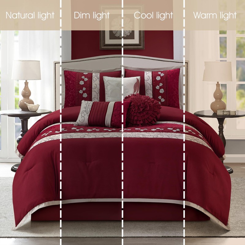 Stratford Park Floral 7-Piece Comforter Set, Wine, California King Size Classical Bedding Set