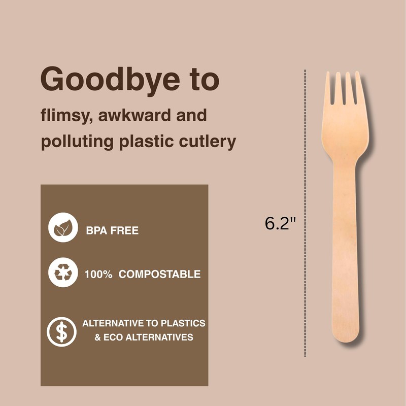 - Easy & Eaarth-Friendly Disposal: Cleanup is a breeze with our biodegradable and compostable forks. After use, they naturally decompose, ensuring an eco-friendly end to your event
