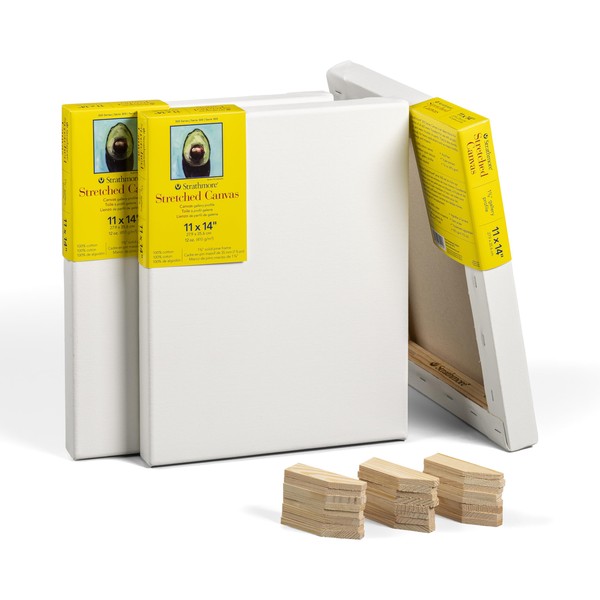 Strathmore 300 Series Gallery Stretched Canvas Pack, 11x14 inch, 3 Pack, Art Canvas for Students Professionals