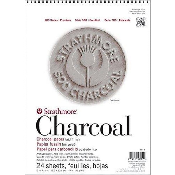 Strathmore (560-1 500 Series Charcoal Pad, 9 x 12 Pulgadas, 24 Hojas, Color Blanco