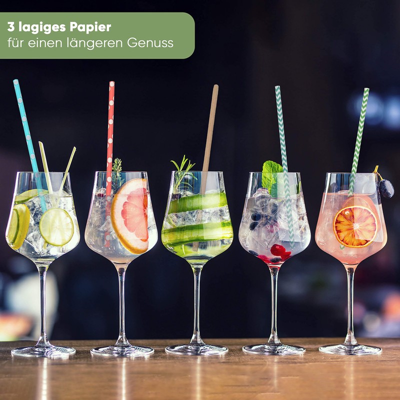 - Premium quality - Our paper straws are exceptionally stable and do not disintegrate. The drinking tubes are made from 3 layers of high-quality paper and are dried in a sophisticated Active Dry process. For the highest quality and stability.