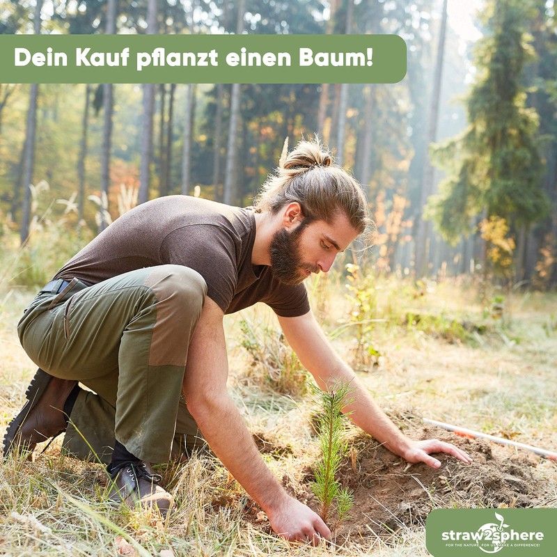 - 1 purchase plants 1 tree - By purchasing one of our products, you do twice as good. We plant a tree for every product sold. And you actively opt against plastic and for the environment. Double helps better.