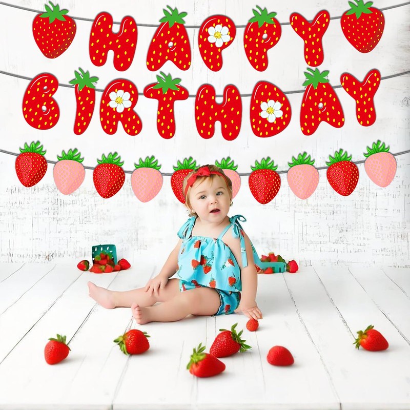Strawberry Banner - Happy Birthday Banner for Berry First Birthday Decor - Strawberry Party Decorations Party Supplies