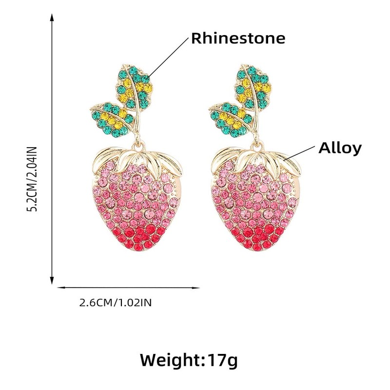 - Strawberry Bohemian Earrings Material- Made of excellent alloy and rhinestones, these funny strawberry fruit earrings are high-quality and not easy to cause irritation to your skin. The superb craftsmanship makes you comfortable to wear.
