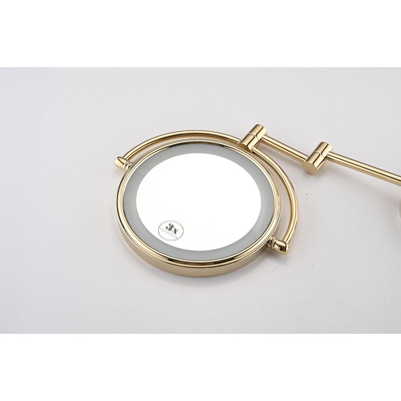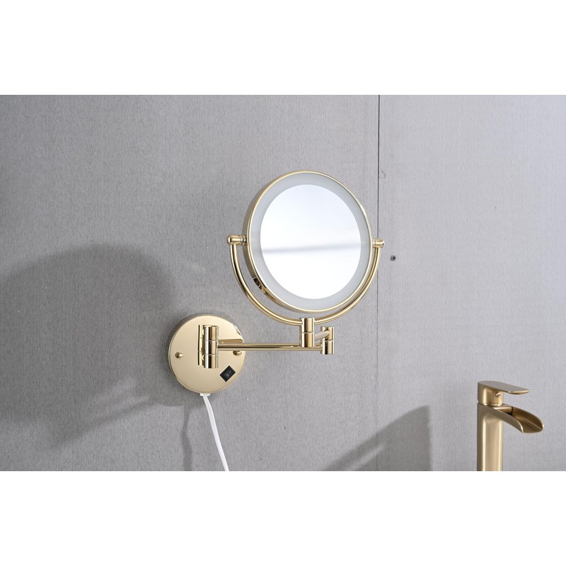 Strawberry Fairy Enhanced Grooming with Two-Sided LED Wall Mount Makeup Mirror, 3X Magnification, 360-Degree Rotation, Gold Finish