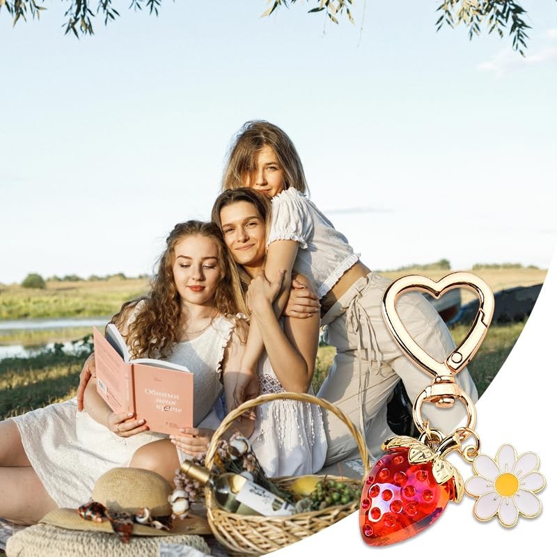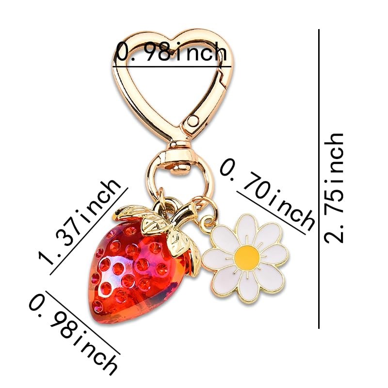 - Exquisite Daisy Keychain Accessories for Girls Women: The kawaii purse charms for handbags is innovative and trendy, the lovely red strawberry make you look fashion, exuding elegance and delicacy in every aspect, daisy pendant makes this keychain even more playful and cute and the heart-shaped keychain adds fun, blending fashion and refinement harmoniously, the daisy charm for purse suitable for any trip and outfit, increase your personal charm and attractiveness every moment