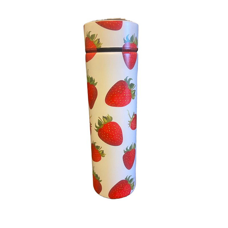 Strawberry Water Bottle - 450ml | Stainless Steel | with Tea/Fruit Infuser | Perfect for Hot and Cold Drinks