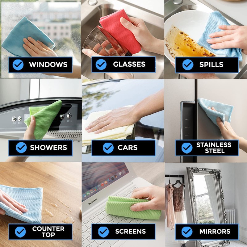 - 跡が残らないミラクルクリーニングクロス : 跡を残さず、表面を完璧にきれいにするのは魔法のようになります。 秘密は革命的な線のないミラクルクリーニングクロスのデザインで、メッシュ織りのデザインにインスパイアされています。 幅広いクリーニング目的に適しています - ご自宅をきれいに輝かせること間違いなしです。