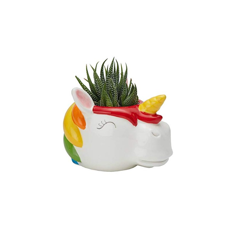 - Bringing instant cheer to your home, this whimsical ceramic unicorn holds plants, succulents or flower arrangements