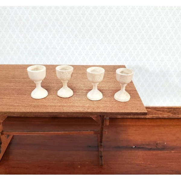 Streets Ahead Miniature Wood Goblets Chalices x4 1:12 Scale Dollhouse Decoration Kitchenware