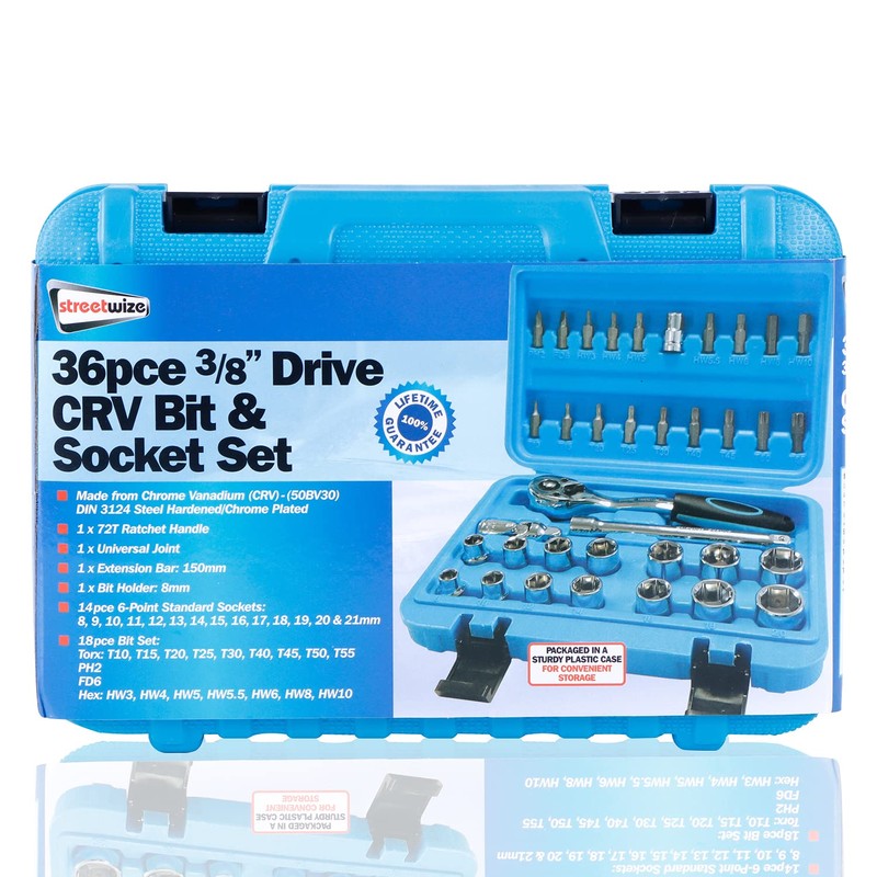 Streetwize - [Set of 36 pcs] Chrome Vanadium Drive Socket Set - 3/8''