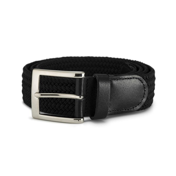 Streeze 35mm Wide Stretch Belt - Braided Elastic Woven Belt with Silver Buckle Ideal for Jeans (2XL 45" - 48", Black)