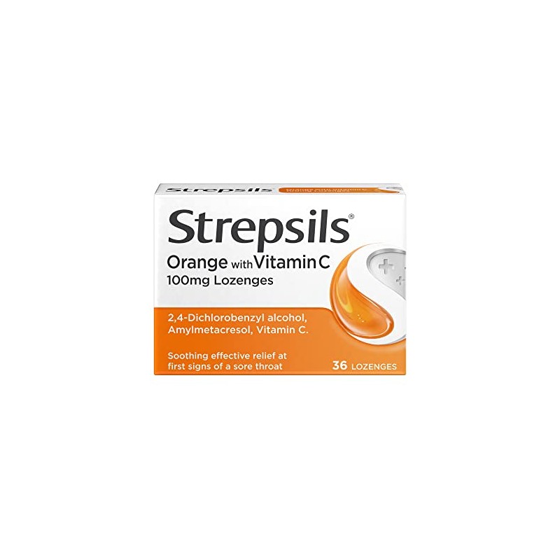 Strepsils Orange And Vitamin C Lozenges for Sore Throat and Cough Relief, 36 Lozenges