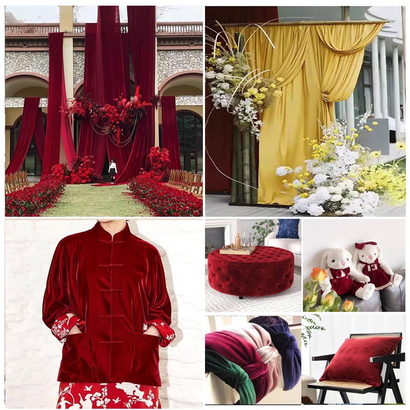 - Versatile Use: Whether you're sewing clothes, dress, dance costumes, making accessories, or home décor, upholstery, sofa, curtains, chair covers, tablecloths and backdrops for photo props, the stretchability and soft drape of velvet fabric make it an ideal choice to bring your imaginative ideas to life.