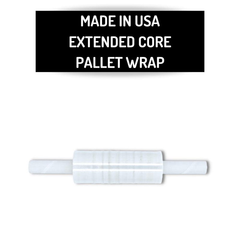 Extended core pallet wrap is excellent for protecting and bundling items. Each roll is equipped with an extended core on each end, acting as stationary handles that help in the application process. Pallet wrap provides resistance against tears and punctures and protects from minor damages and elements such as dust and moisture. This wrap is lightweight and self-adhering making it very easy and convenient to use.