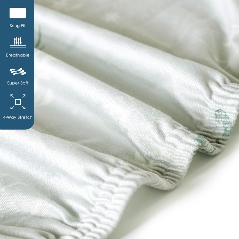 Thanks to the 360-degree elastic band, we created crib mattress cover that will remain fit and snug all night long. Enabling you to rest assured that your baby is safe, snug and sound. Our feature ensures that there is no bunching, ill-fitting, or too-loose fit on mini crib sheets fitted.