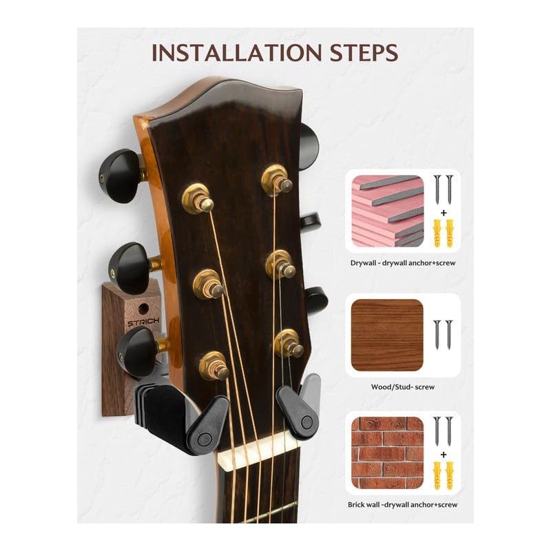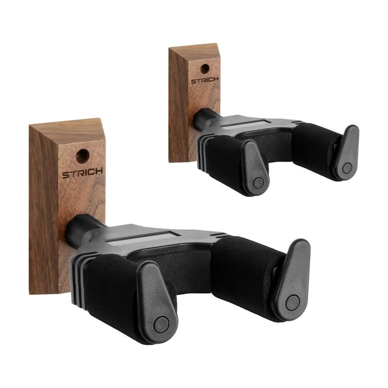 STRICH Guitar Wall Mount,Walnut,U-Shaped with Screws,Auto Lock Guitar Holder Hook for Acoustic, Electric Guitar, Banjo, Bass(2-Pack)