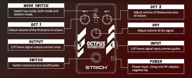 - 🎸 NOTICE: Package includes STRICH octave guitar pedal and owner manual. Operating voltage: 9v DC. NOTICE: The power supply is NOT included.