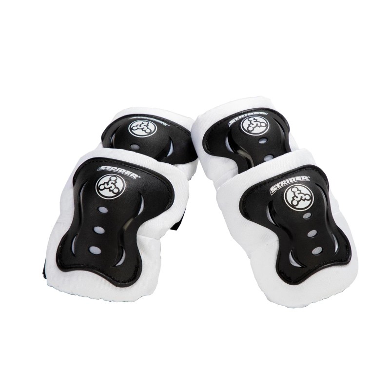 Strider Elbow and Knee Pads provide maximum protection so your little rider can have the confidence to go big, and you can have the confidence to let them. The Velcro straps make the pads easy to attach and stay securely in place on even the smallest of riders. With hard plastic protecting little knees and elbows and the Strider logo design, kids can pick themselves up after a fall and look good doing it. The set includes two elbow pads and two knee pads and fits children ages 18 months to 5 years.