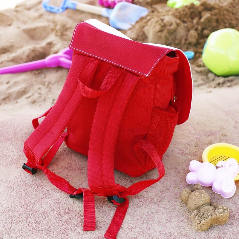 - The red children's backpack is 20 cm x 25 cm x 12 cm (W x H x D) and weighs 300 g, is made from 100% polyester and is washable up to 30 °C